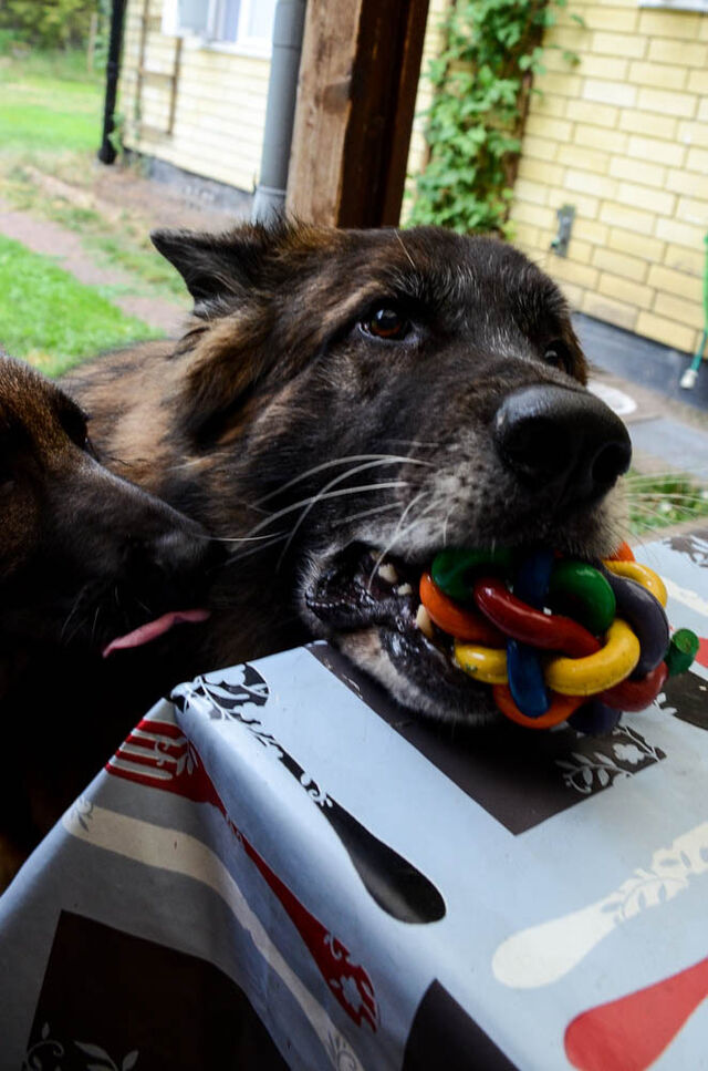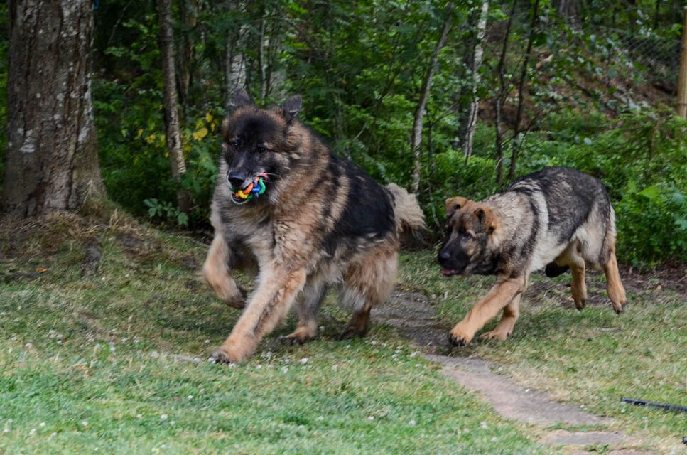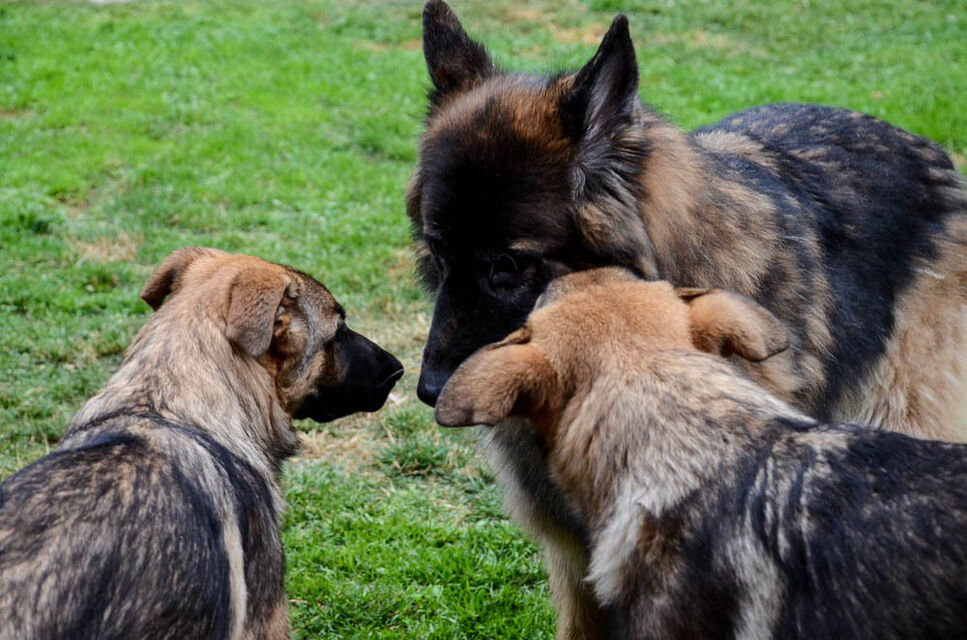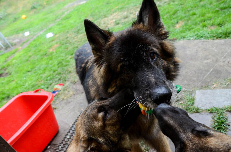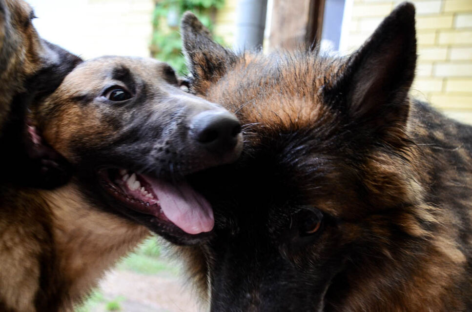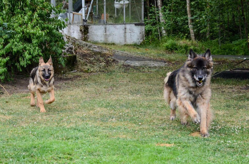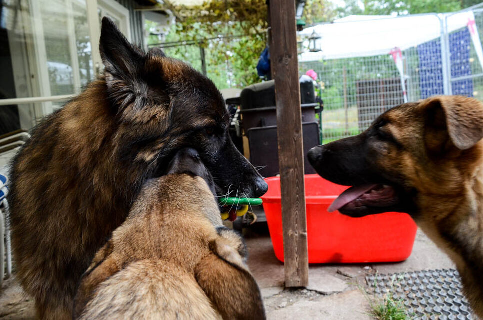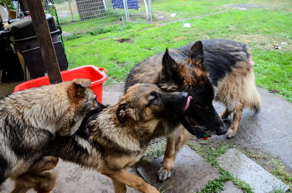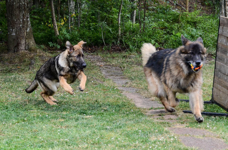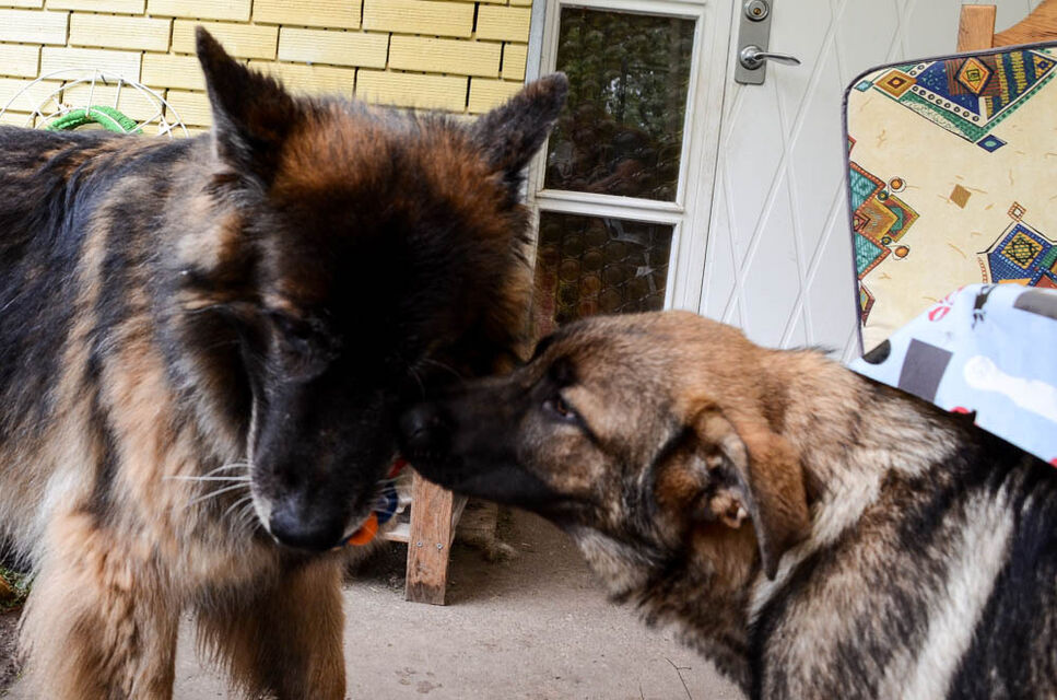 Valparna busar med en av mina äldre hundar.